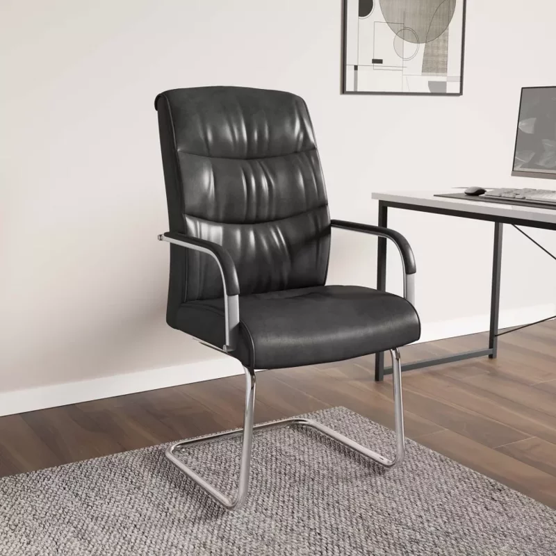 La superficie in similpelle nera è resistente e facile da pulire, mentre le linee eleganti la rendono adatta sia a un ufficio moderno che a un angolo studio domestico.